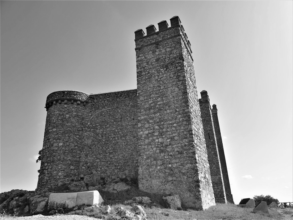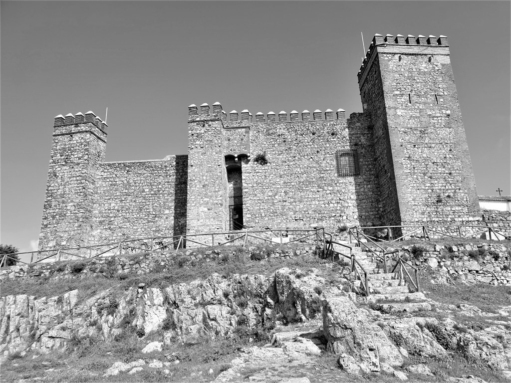 Y seguimos nuestra ruta por la HU-8105 hasta Cortegana, donde subimos a su castillo. El castillo de Cortegana es una fortaleza medieval destinada al control fronterizo de la vía que atraviesa la Sierra de Aroche y comunica el Valle del Guadalquivir con el Alentejo portugués, formando parte de la llamada Banda gallega, línea defensiva que tenía como misión principal proteger al Reino de Sevilla ante posibles invasiones desde el país vecino, dadas las frecuentes disputas sobre las fronteras entre ambos reinos.