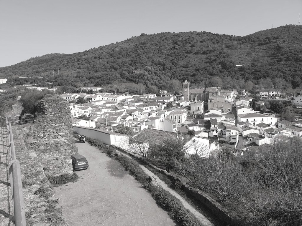 A eso de las 09:00h bajé al pueblo en busca de mi desayuno, y aún eran pocas las cafeterías abiertas. Finalmente, después de dar algunas vueltas elegí una con poco tino, porque el café estaba bueno, pero el pan no era muy bueno y sobre todo, el tomate no era fresco, claramente llevaba uno o varios días preparado… En cualquier caso, Aracena me pareció un pueblo muy interesante, con unas calles, plazas y terrazas muy animadas y elegantes, sin duda merece una visita más sosegada de al menos dos días completos, para callejearla a fondo, y visitar el centro de interpretación del parque natural y el museo del jamón. También tiene la Gruta de las Maravillas, aunque a mí personalmente, esa es una visita que no me atrae.
