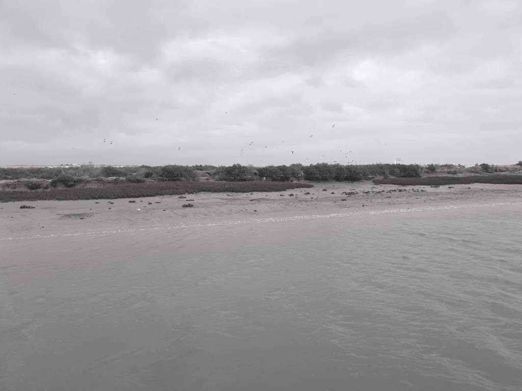 Los tripulantes eran gente simpática, marinos de cierta edad con aire de aceituneros, de jornaleros del mar. Gente amable pero pésimos fotógrafos. Salimos del embarcadero con mucha energía, haciendo casi un trompo en un vigoroso giro de 180 grados, y empezamos a navegar rumbo a la desembocadura, por un canal sin más barcos que el nuestro, en una mañana gris y con viento. Me quedé en la cubierta disfrutando de las vistas. La borda de estribor daba a las Salinas de Tavira en el Parque Natural da Ría Formosa, y todo el rato las aves marinas estuvieron volando a nuestro alrededor, y picoteando la playa, supongo que buscando almejas y otros moluscos. Me llamaron la atención los flamencos, esa especie de patos menudos, estilizados y elegantes, montados sobre unas largas patas. Y había muchas más especies que yo, lamentablemente, no sabía distinguir. Me acordé de mis amigos pajareros que seguro, habrían disfrutado mucho de este paseo en barco.